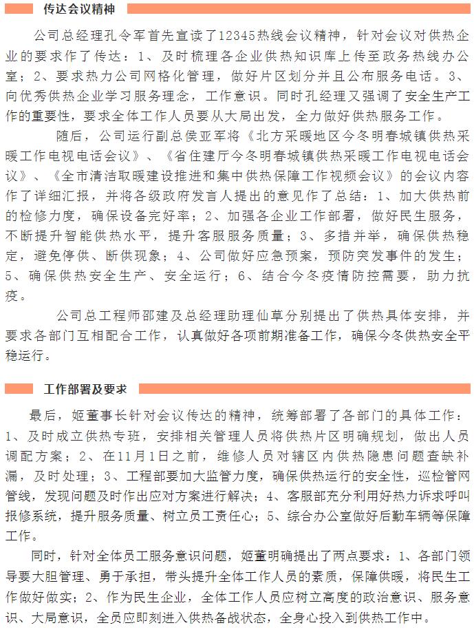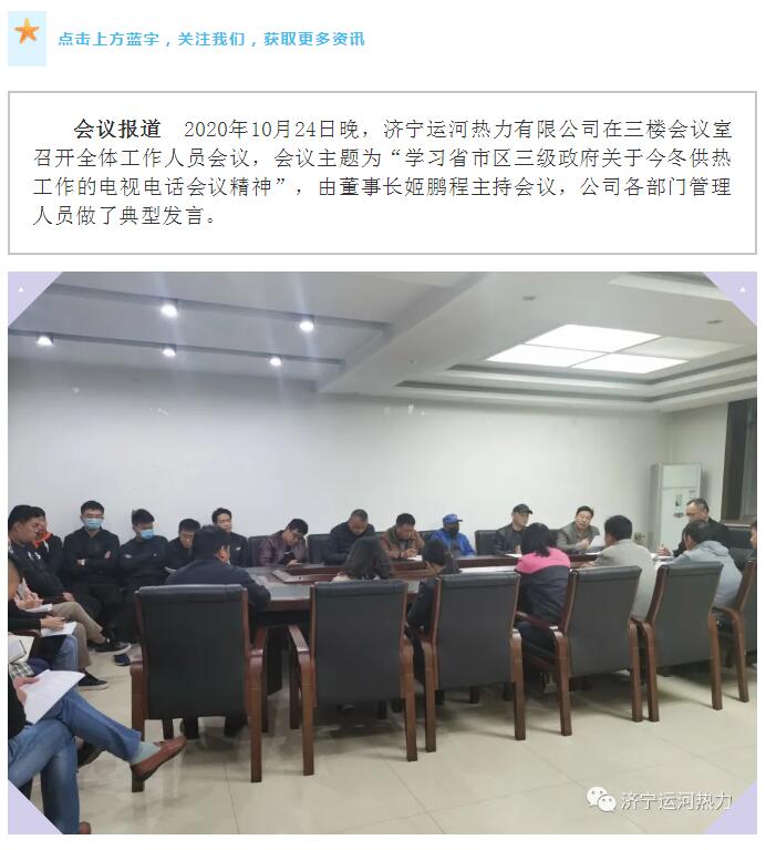 加強(qiáng)管理、提高認(rèn)識,確保順利完成今冬供熱任務(wù)——運(yùn)河熱力認(rèn)真貫徹落實全省供熱電視電話會議精神紀(jì)實