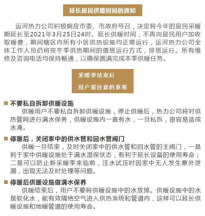 運(yùn)河熱力關(guān)于延長(zhǎng)居民供暖時(shí)間的通知