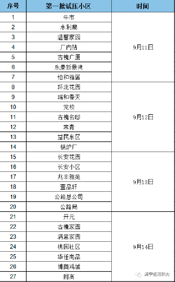 第二批試壓小區(qū)的試壓時間另行通知,請廣大用戶留意公眾號發(fā)布信息及單元通知欄張貼信息。