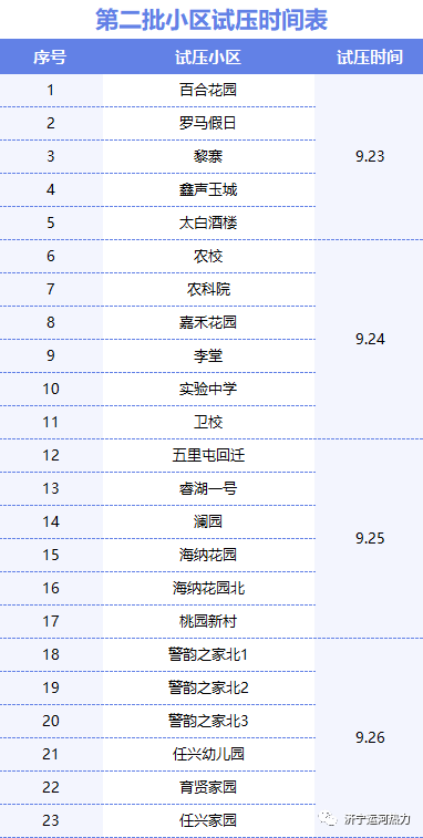 第三批試壓小區(qū)及新接入小區(qū)的試壓時(shí)間另行通知,請廣大用戶留意公眾號發(fā)布信息及單元通知欄張貼信息。